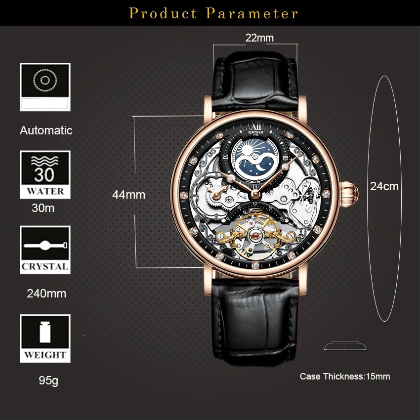 KINYUED Skeleton Automatic Watch Men Sun Moon Phase Waterproof Mens Tourbillon Mechanical Watches Top Brand Luxury Wristwatches : Click here