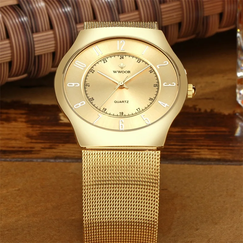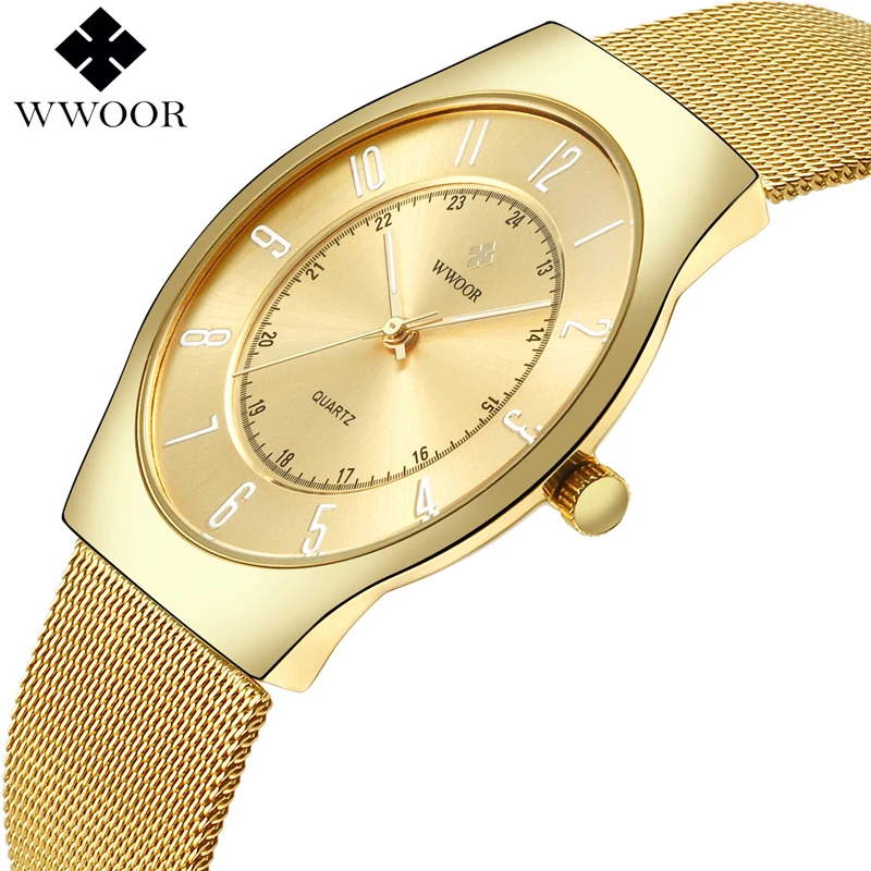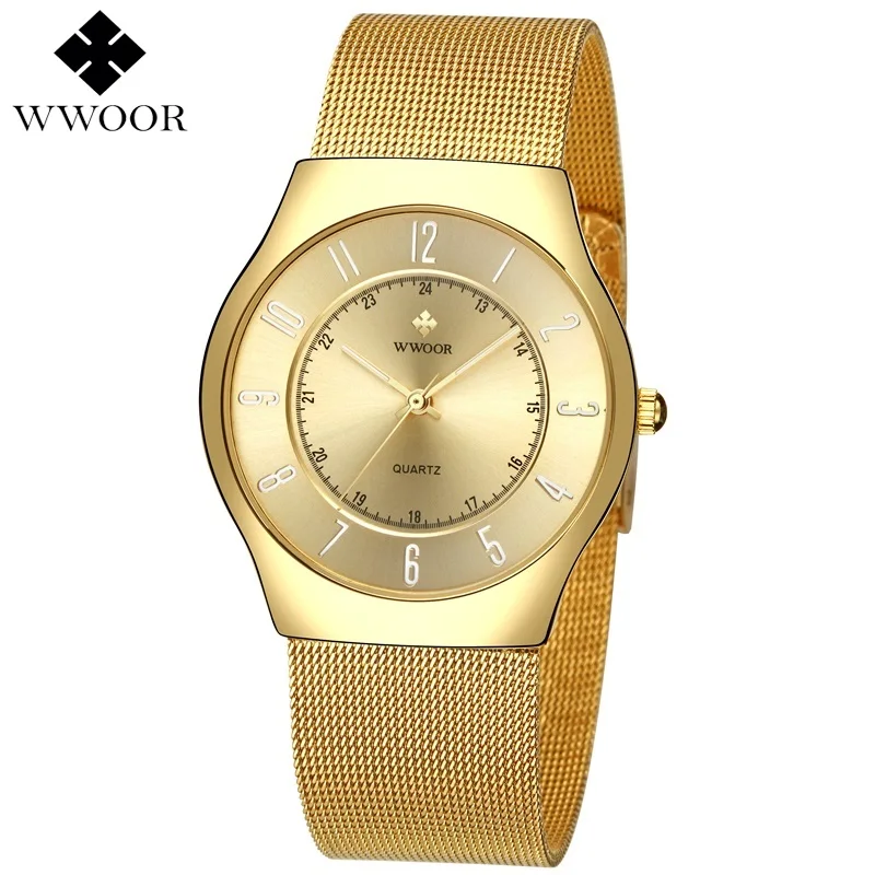 Limited Edition Men's Quartz Dress Watch WWOOR Top Brand Luxury Ultra Thin Waterproof Sports Wristwatches Men Gold