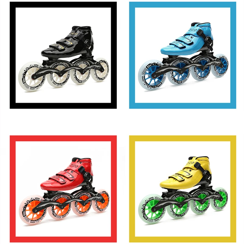 Carbon Fibre Inline Speed Skates Patines 3 4 wheels Professional Race Shoes for Marathon Asphalt Ground Road Skating 85A30-45 : Click here