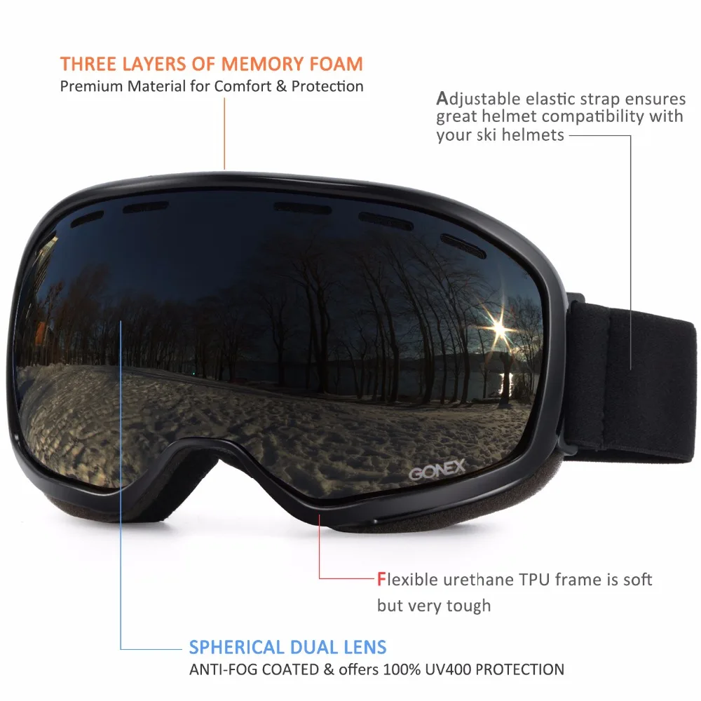 Gonex 2019 OTG Ski Goggles Snowboard Skiing Eyewear Glasses Men Women UV400 Protection Double Spher only US $20.39